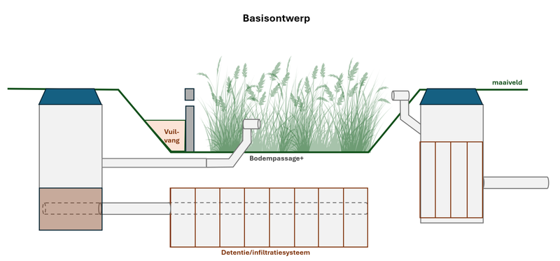 Ontwerp 1: wadi met retentie- en infiltratiesysteem